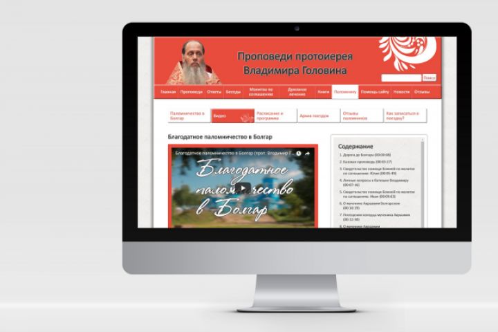 Функционал: удобный плейлист-навигация к проповедям, размещение видео и аудио-версий, поиск на сайте, форма отправки отзывов, блоки социальных кнопок, интеграция комментариев Вконтакте, подгружающиеся списки контента, блок новостей.