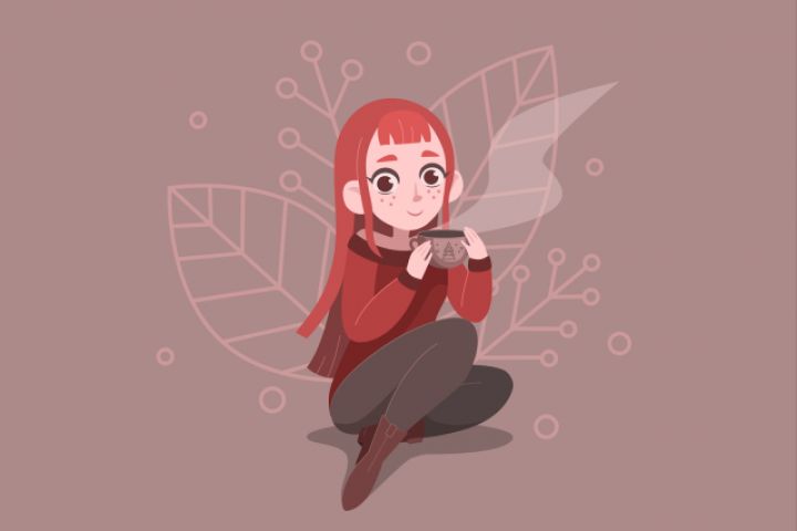 Теплая персонажная иллюстрация в векторе, выполнена в программе Adobe Illustrator.