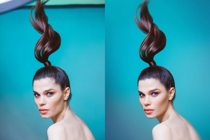 Рекламная фотография - крупный портрет. Была выполнена ретушь кожи, волос и фона.
