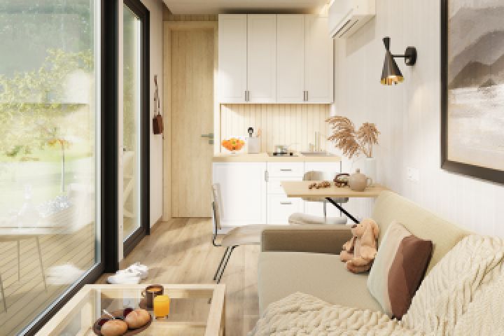 Виз интерьера сауны с бассейном и горизонтальным душем