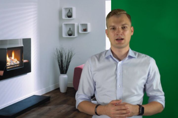 Всё делалось с минималистичными переходами. Ведущие был снят на фоне хромакея, а т.к. работу не приняли (к сожалению), оставил с хромакеем фрагмент, и в начале речи ведущего показал, как было на хромакее - и какой добавил фон. Так же добавил небольшой музыкальный фон.