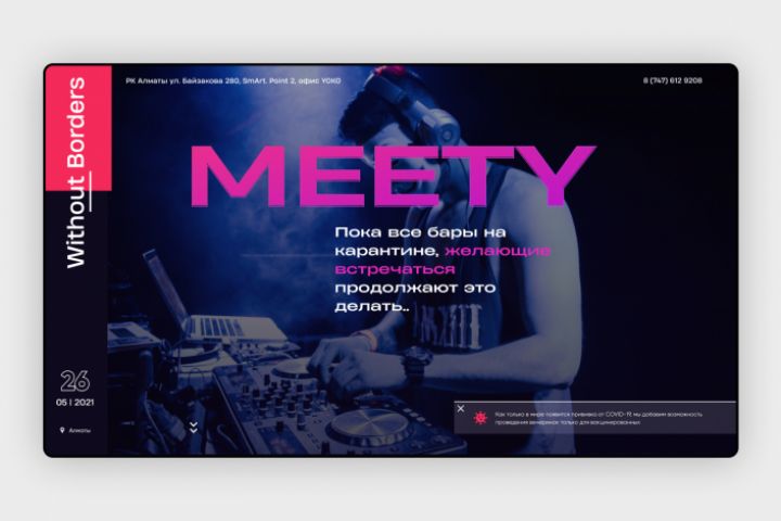 Концептуальный дизайн Landing Page. Выполнено на основе презентации мобильного приложения Meety.