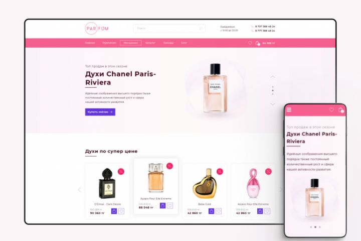 Интернет магазин духов премиум класса. Предпочтения к дизайну: легкий, нежный, стильный.