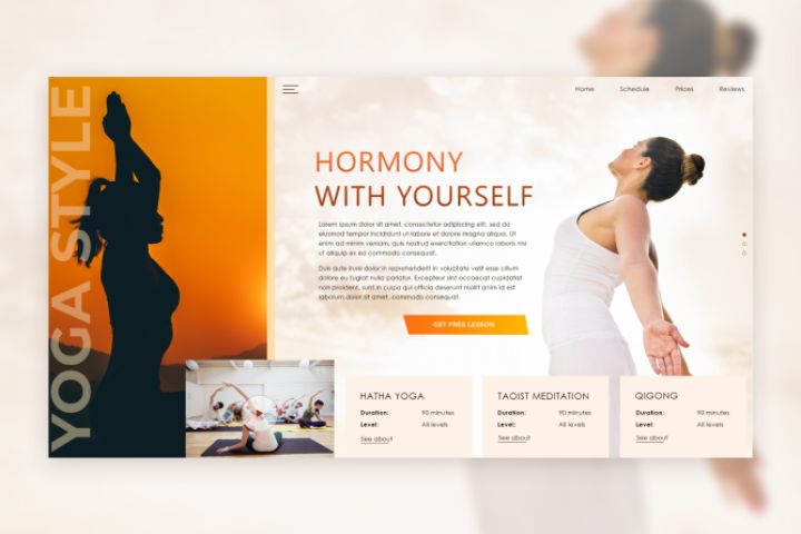 Концептуальный дизайн, новый взгляд на студию йоги. Выполнено в Adobe Photoshop.
