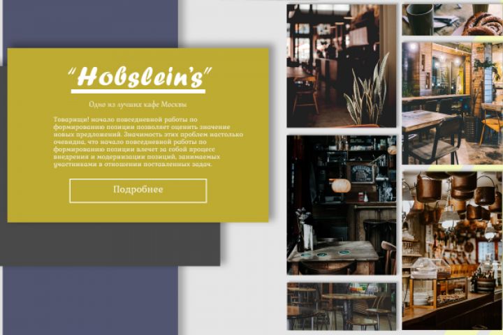 Дизайн и кроссбраузерная адаптивная верстка лендинга кафе "Hobslein's". Корректно отображается на смартфонах и ПК.