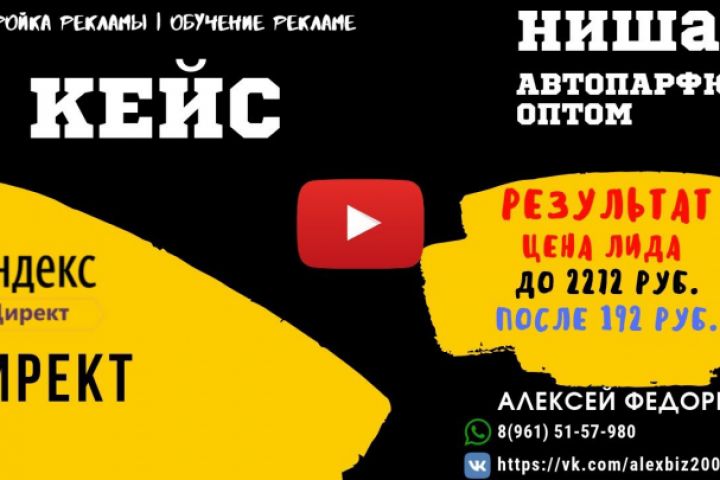 Кейс по Яндекс директу в оптовой нише автопарфюма. Лид до был 2272 рубля. После нашей настройки - 192 рубля. Смотрите подробный разбор кейса в видео.