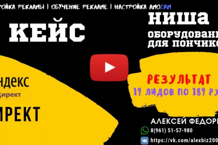 Заказчик - поставщик оборудования для изготовления пончиков Канал рекламы Яндекс директ За 7 дней работы получено 19 целевых лидов Стоимость лида 189 рублей