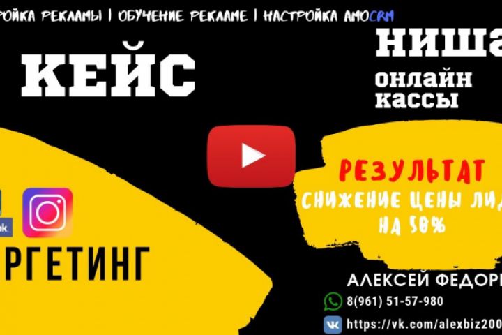 Кейс по продвижению кампании по онлайн-кассам. Цена лида до изменений 107 рублей Цена лида после изменений 60 рублей Канал продвижения - таргетинг Фейсбук/Инстаграм Результат 36 целевых лидов за 3 дня работы новой кампании