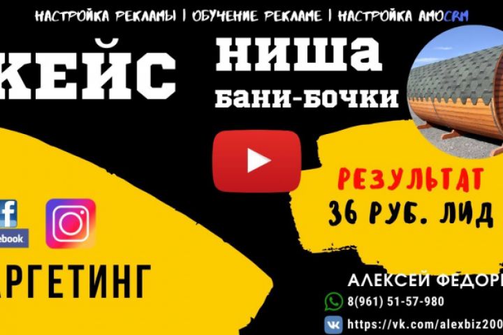Снова ниша бани-бочки. Обратились по рекоммендации. Цена лида 36 руб На момент публикации видео - 20 лидов, чуть больше, чем за сутки. ГЕО - Краснодарский край