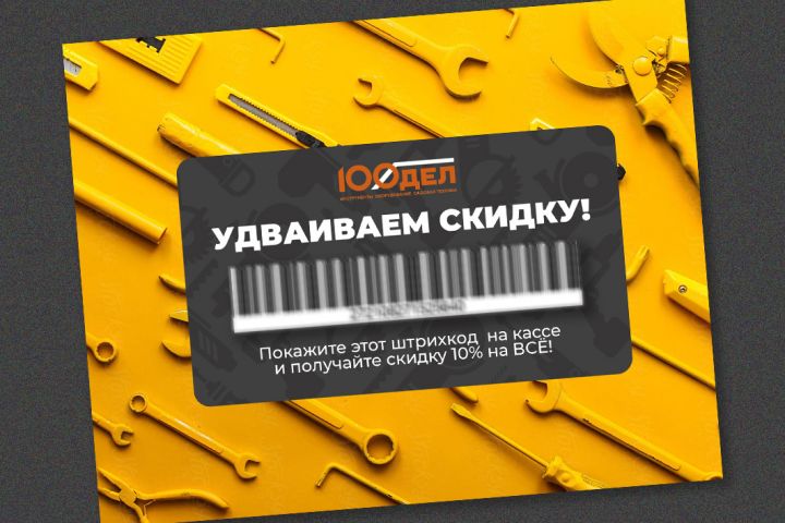 Разработала дизайн купона со скидкой для строительного магазина. Изображение использовалось для рекламы в соц.сетях