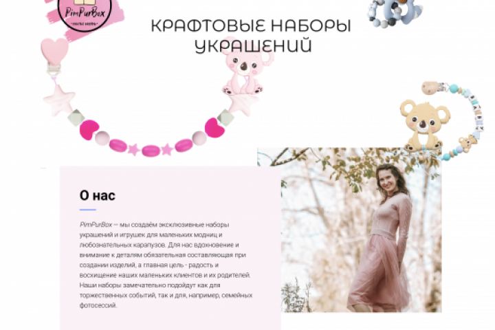 Интернет-магазин крафтовых наборов украшений с каталогом товаров. Сайт сделан с использованием zero block.