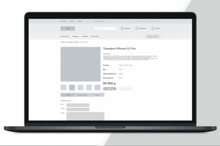 Вторая страница сайта интернет магазина TechShop — страница карточки товара. Подробнее о проекте описано в прототипе основной страницы.