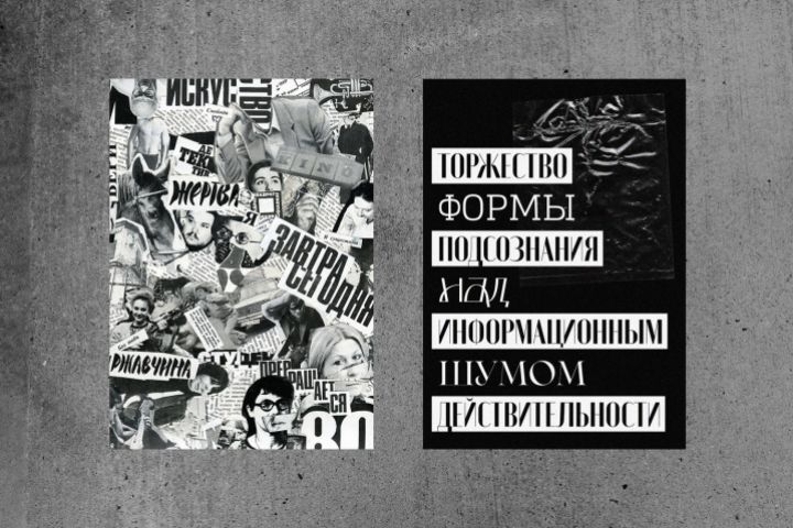 Совмещение ручного коллажирования из старых советских журналов и диджитал типографики