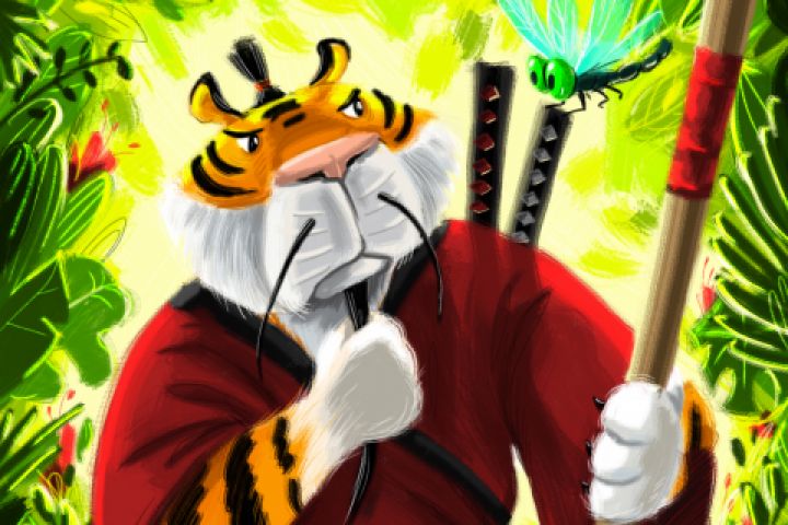 Иллюстрация к марафону День крокодила 2021. Дизайн персонажа Тигр самурай