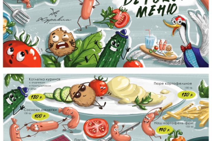 Разработка иллюстраций для детского меню ресторана