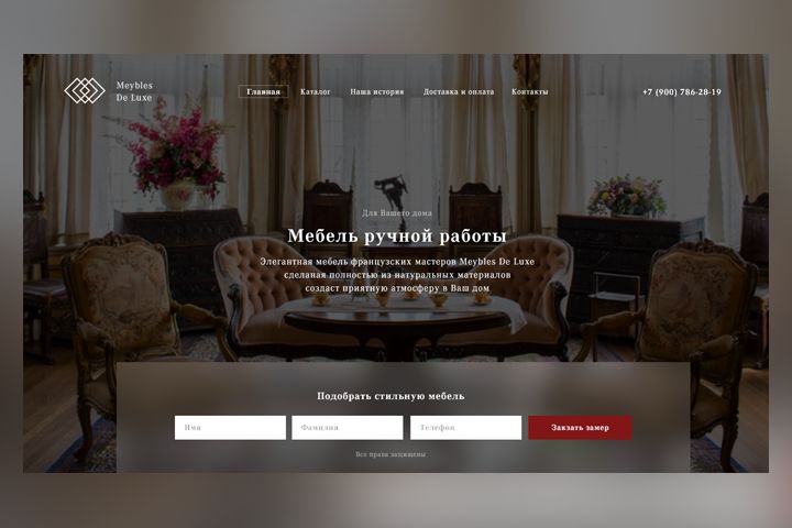 Landing page для итальянской компании Meybles De Luxe, создан для заказа элитной мебели ручной работы. Сайт выполнен в утонченном стиле, чтобы подчеркнуть премиальность компании.