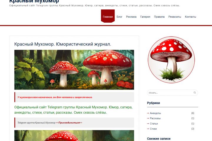 Официальный сайт Telegram группы Красный Мухомор. Юмор, сатира, анекдоты, стихи, статьи, рассказы. Смех сквозь слёзы.