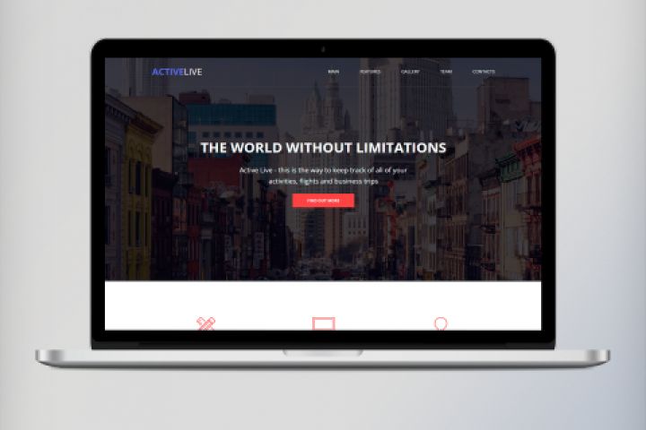 Лэндинг с галереей, эффектами при наведении на пункты меня и кнопки.