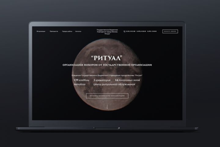Верстка сайта в формате Landing Page для Государственного Бюджетного Учреждения города Москвы “Ритуал”.
