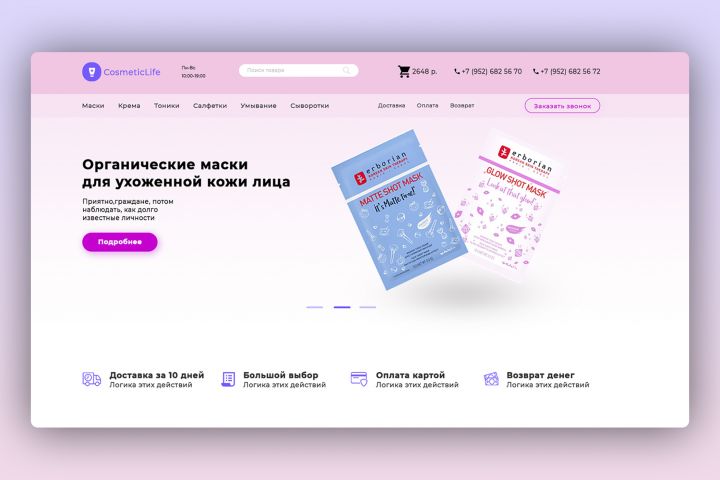 Интернет-магазин для бренда органической косметики "CosmeticLife".
