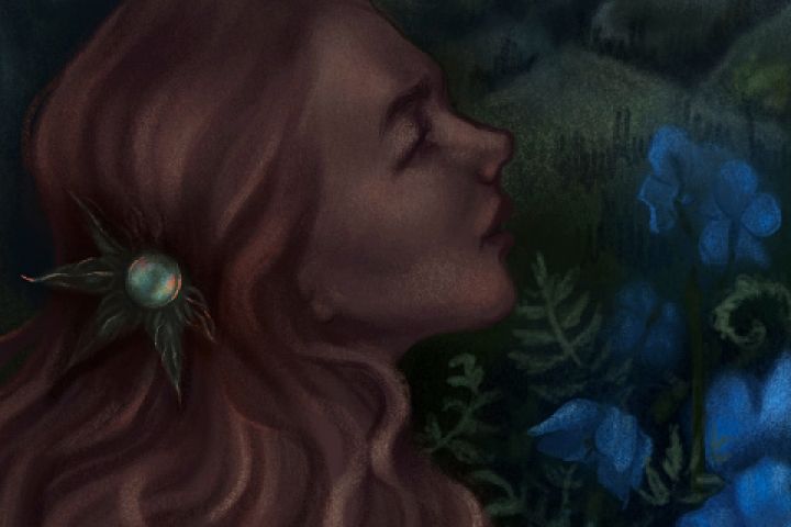 «Темный, туманный лес, в котором сыро и свежо. Цветы излучают сапфировое свечение. И этот запах..Здесь спокойно и просторно»