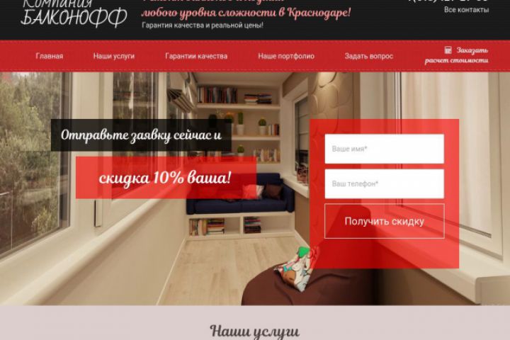 В нашей Web-студии был создан сайт-визитка компании балконофф. Компания занимается отделкой балконов различной сложности.