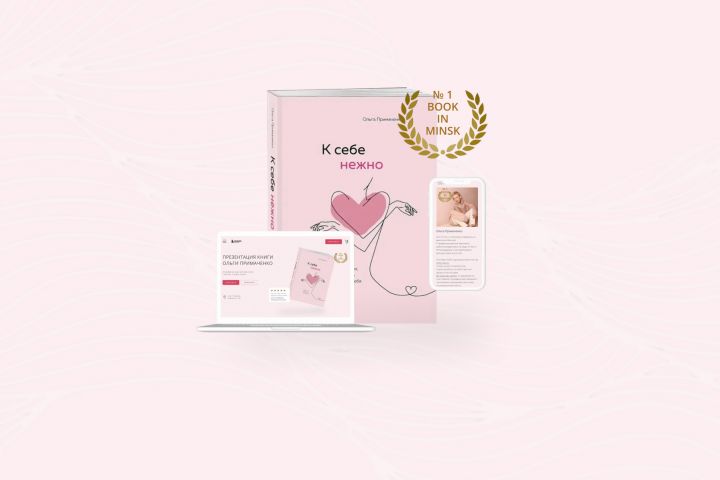Концепт лендинга презентации книги "К себе нежно" Ольги Примаченко. В Лендинге разработана страница товара, отзывов, рецензий