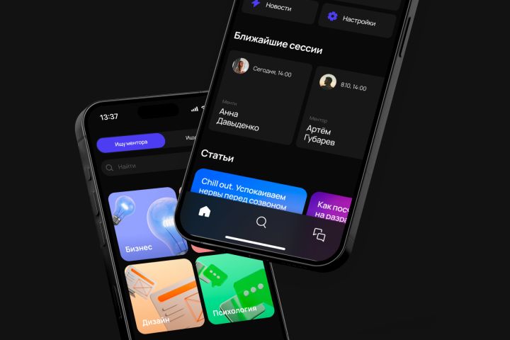 Чат: В нём обе стороны могут обсуждать и назначать сессии. В конце забираем у пользователя обратку, чтобы определить компетентность ментора.