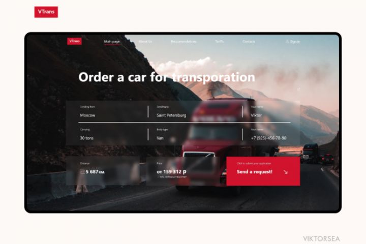 Главный экран для транспортной компании