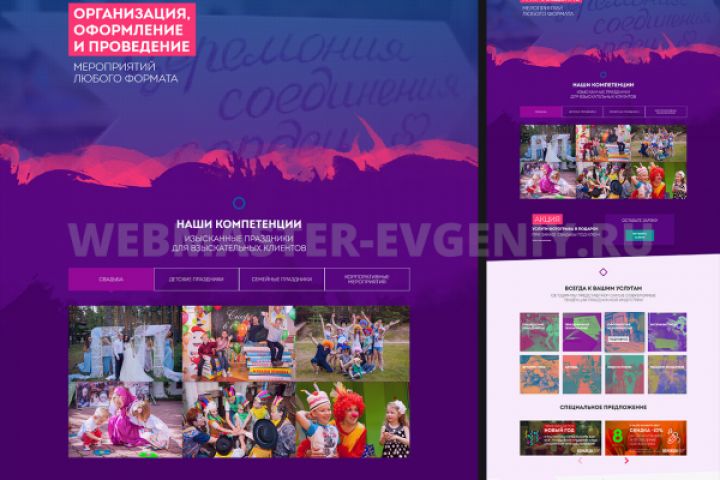 Яркая страница для праздничного агенства.