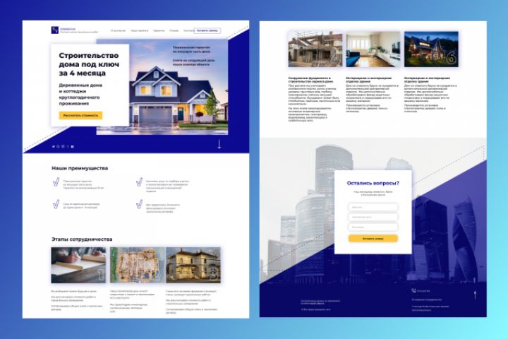 Разработка прототипа, дизайна многостраничного сайта строительной компании. Мобильные и десктопная версии. Тексты на главную и внутренние страницы о строительной компании и предоставляемых услугах.