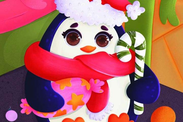 Персонаж с фоном был разработан для серии новогодних открыток, которая предназначена для продажи на маркеплейсах. Иллюстрация создана в программе Procreate на графическом планшете. Обработана в Photoshop и полностью подготовлена для печати в типографии.
