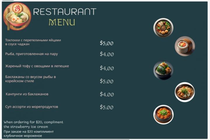 Цвет меню не бросается в глаза. На главной странице показаны самые популярные и вкусные блюда. Нужно было сделать акцент именно на популярные блюда. Так же в минималистичном стиле без лишнего.