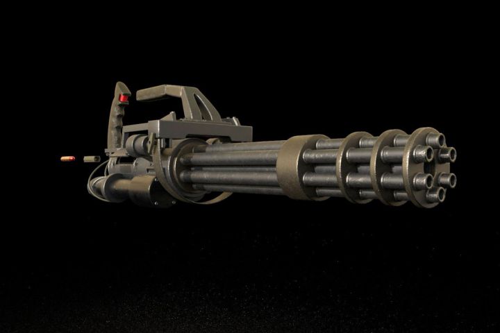 Модель оружия с анимацией кручения стволов во время стрельбы. Патрон и частица ленты унифицированы для применения в игровых движках, с целью оптимизации.