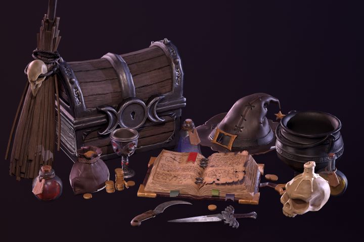 Набор ведьминского реквизита, который можно использовать в игре для наполнения локаций и создания специфичной атмосферы. Подробные фото по ссылке