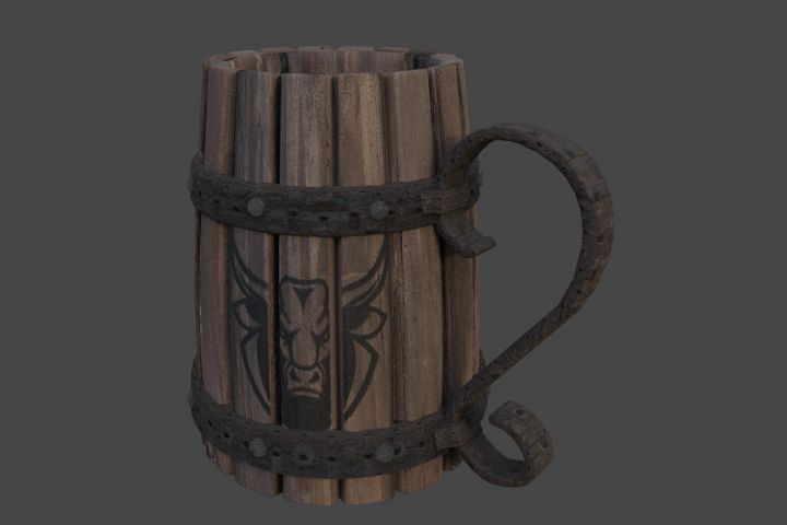 3д модель средневековой кружки,с покраской быка чёрного цвета,создана в blender