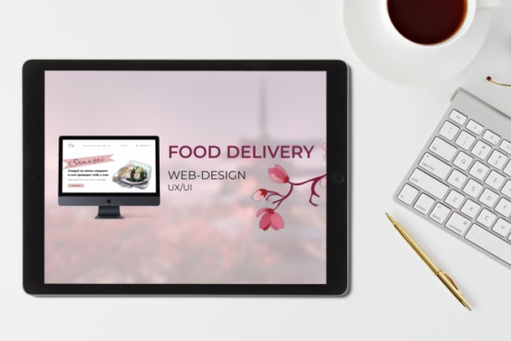 Дизайн сайта ресторана с доставкой еды. Задача стояла создать главную страницу, корзину, личный кабинет и страничку с оформлением заказа.