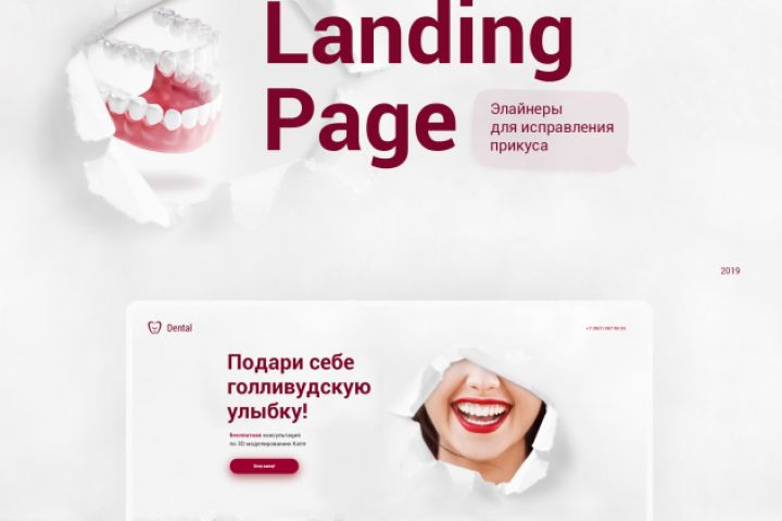 Я решила отталкиваться от цвета предоставленного логотипа. Не хотелось видеть что-то типичное, голубые или салатовые оттенки. Ну и конечно же самый главный вопрос: “Как выделиться среди конкурентов?” Ответ прост: ”Никакой больничной тематики!”. Так и родился “рваный”, белый фон и переходы между экранами, как бы говоря само за себя: “Мы разрываем Ваше представление о современной стоматологии!”