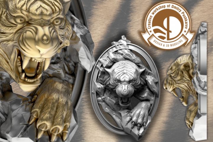 3d модель подвески с тигром в *.stl, *.obj. Дизайн и моделирование