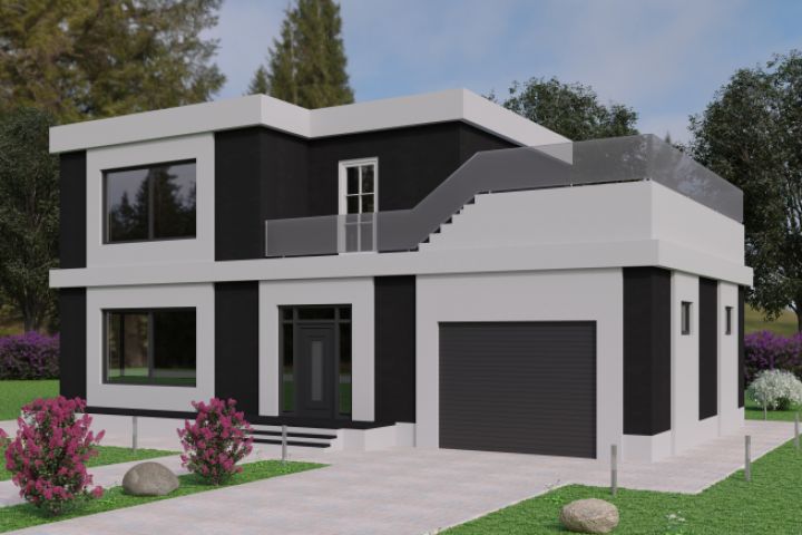 Уютный и привлекательный дом в стиле хай-тек. В доме находится 4 комнаты, 2 комнаты с ванной и открытый бассейн над гаражом.