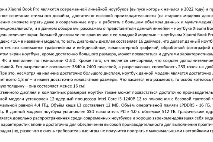 Фрагмент уникального обзора ноутбука Xiaomi Notebook 16 Pro на русском языке. Уникальность по оценке сайта text.ru - 100%.