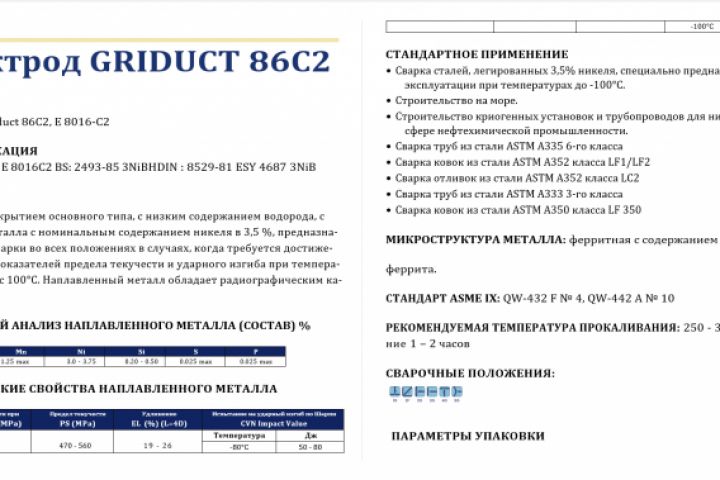 Фрагмент перевода текста технического описания сварочного электрода с английского на русский язык