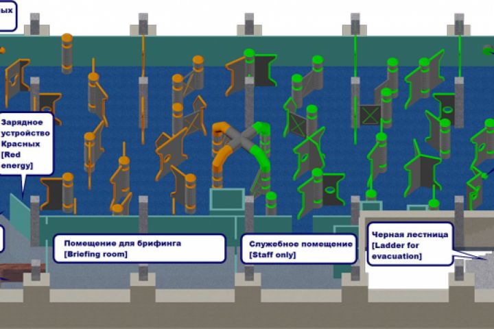 Макет лабиринта лазертаг-арены. Представлен план-схема арены и вспомогательных помещений. Фото объекта в приложении. Публикуется с согласия правообладателя.