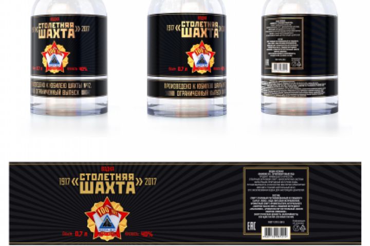 Водочный этикет и бутылка к 100-летию шахты