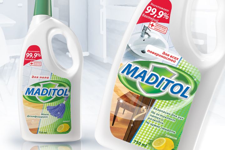 Для компании «Cottonclub» нами был проведен редизайн уже существующего логотипа антибактериальной бытовой химиии «MADITOL». Мы сделали его более лаконичным и современным. Далее была разработана серия этикеток и упаковок для полного ассортимента антибактериальных средств. В дизайне заложена идея защиты от микробов, чистоты и свежести.