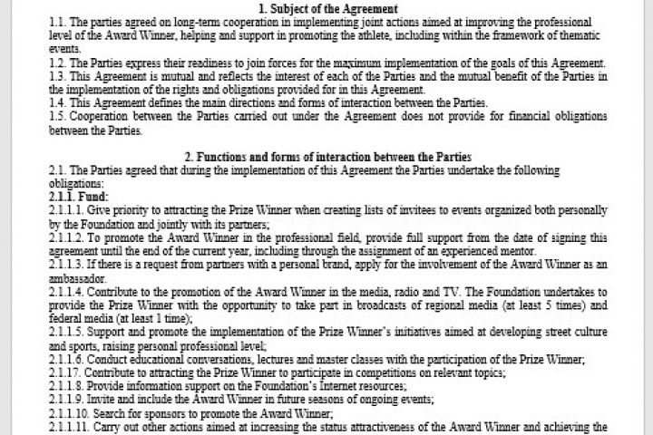Перевод соглашения для финалистов спортивного мероприятия