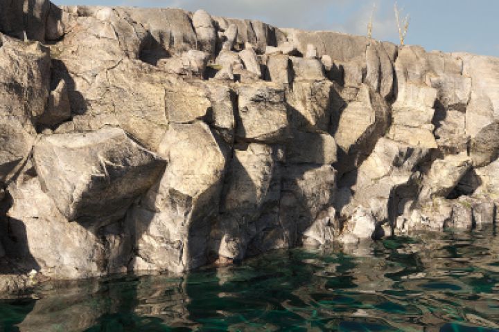 Визуализация скалы. На рендере всё полностью 3d.