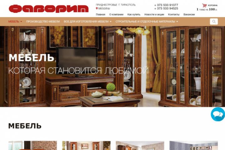Дизайн сайта-интернет-магазина производителя мебели по заказу вебстудии Тира