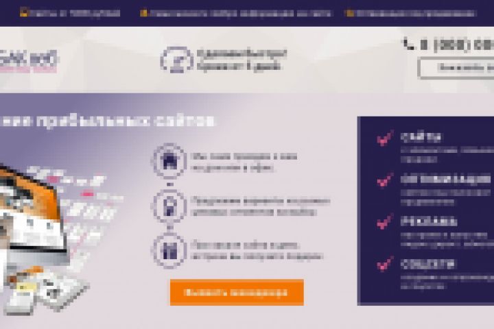 LandingPage для сторонней веб-студии. Каталог работ представлен в формате 3-D галереи.