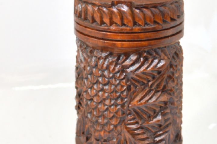 Карандашница высотой 12 см, диаметр 6 см. Вмещает до 30 ручек и карандашей. Вручную украшена резным узором в виде еловых веток и шишек.